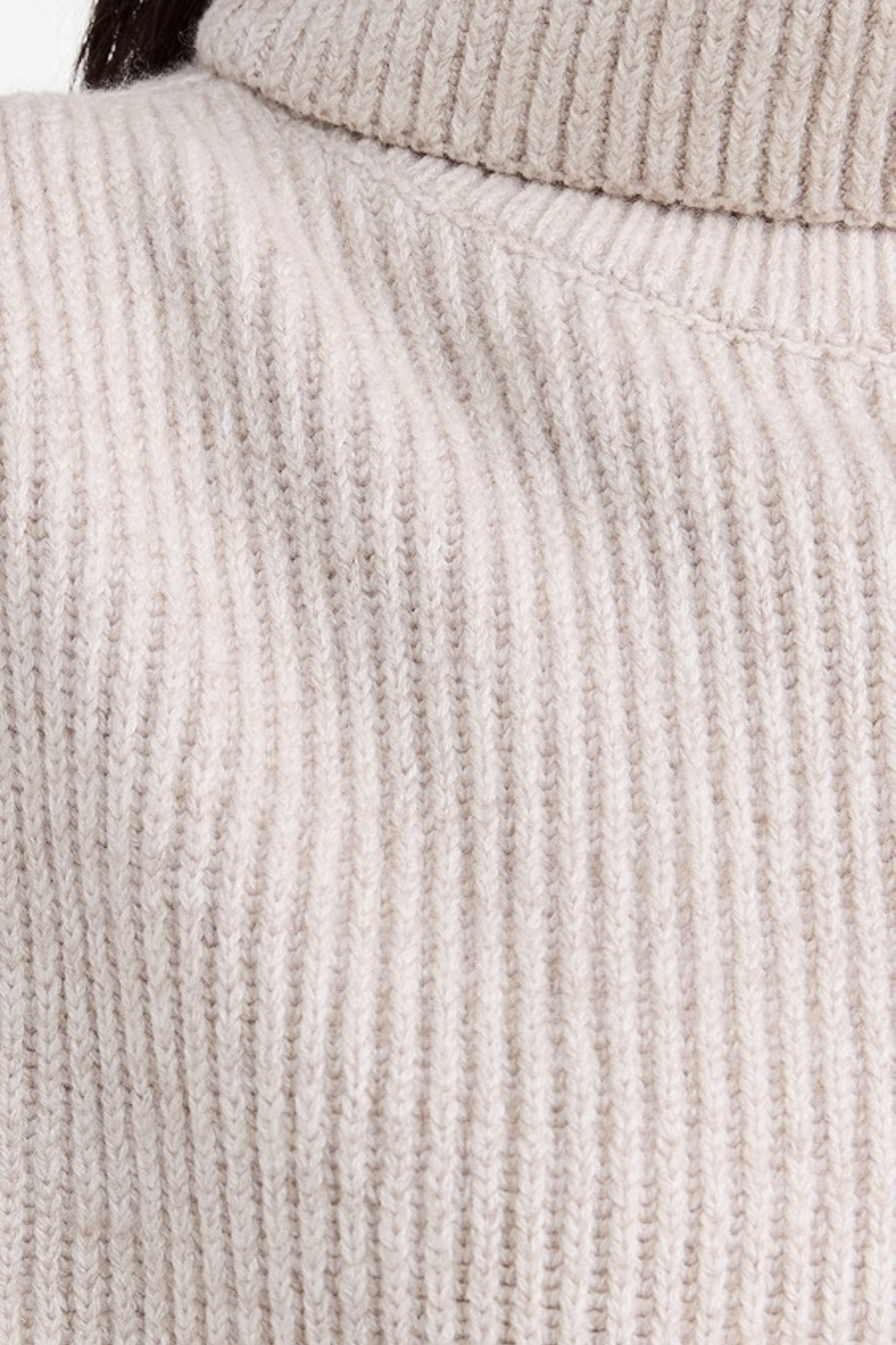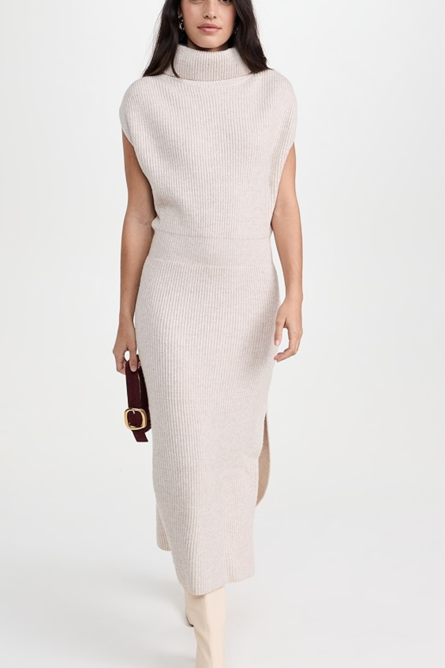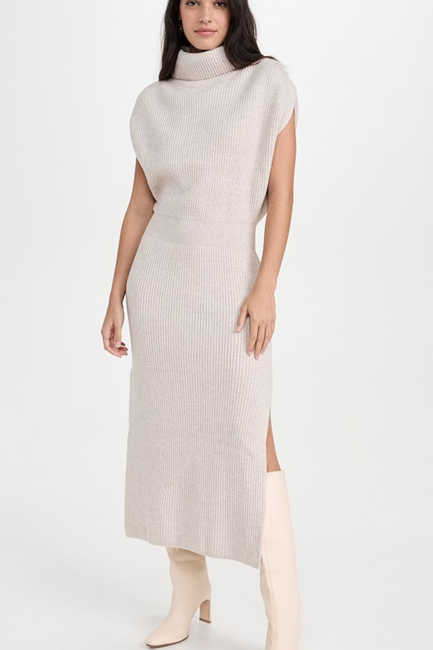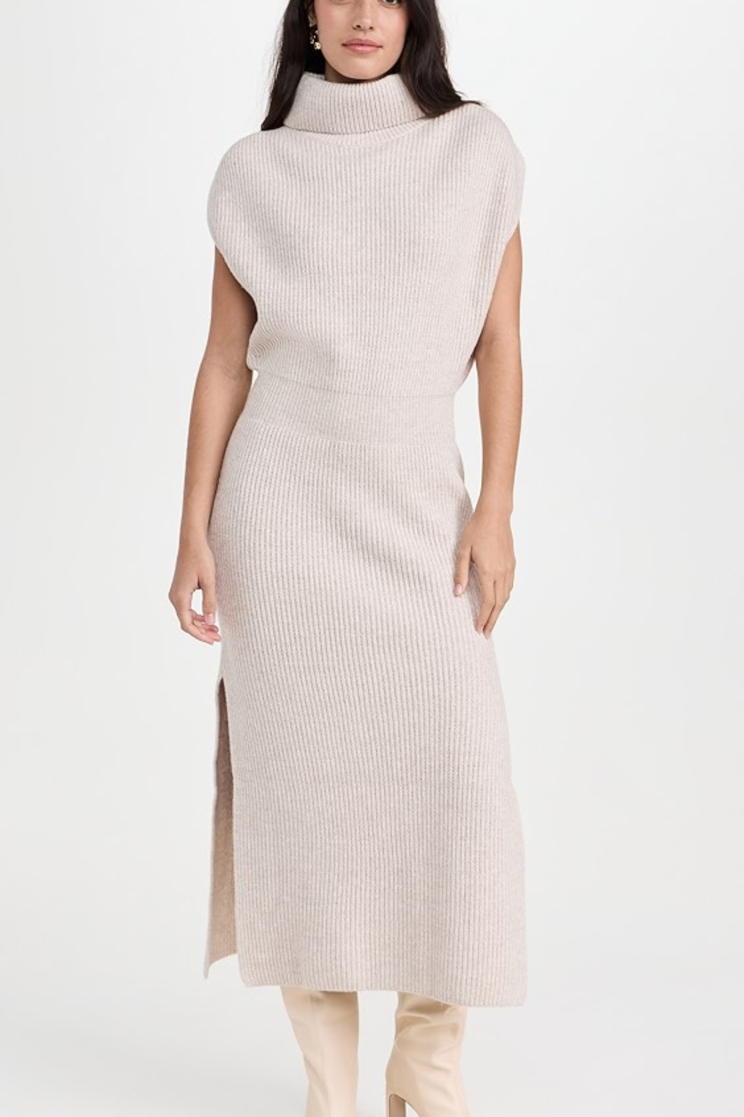 Cowl Neck Waisted Side Slit Midi Sweater Dress