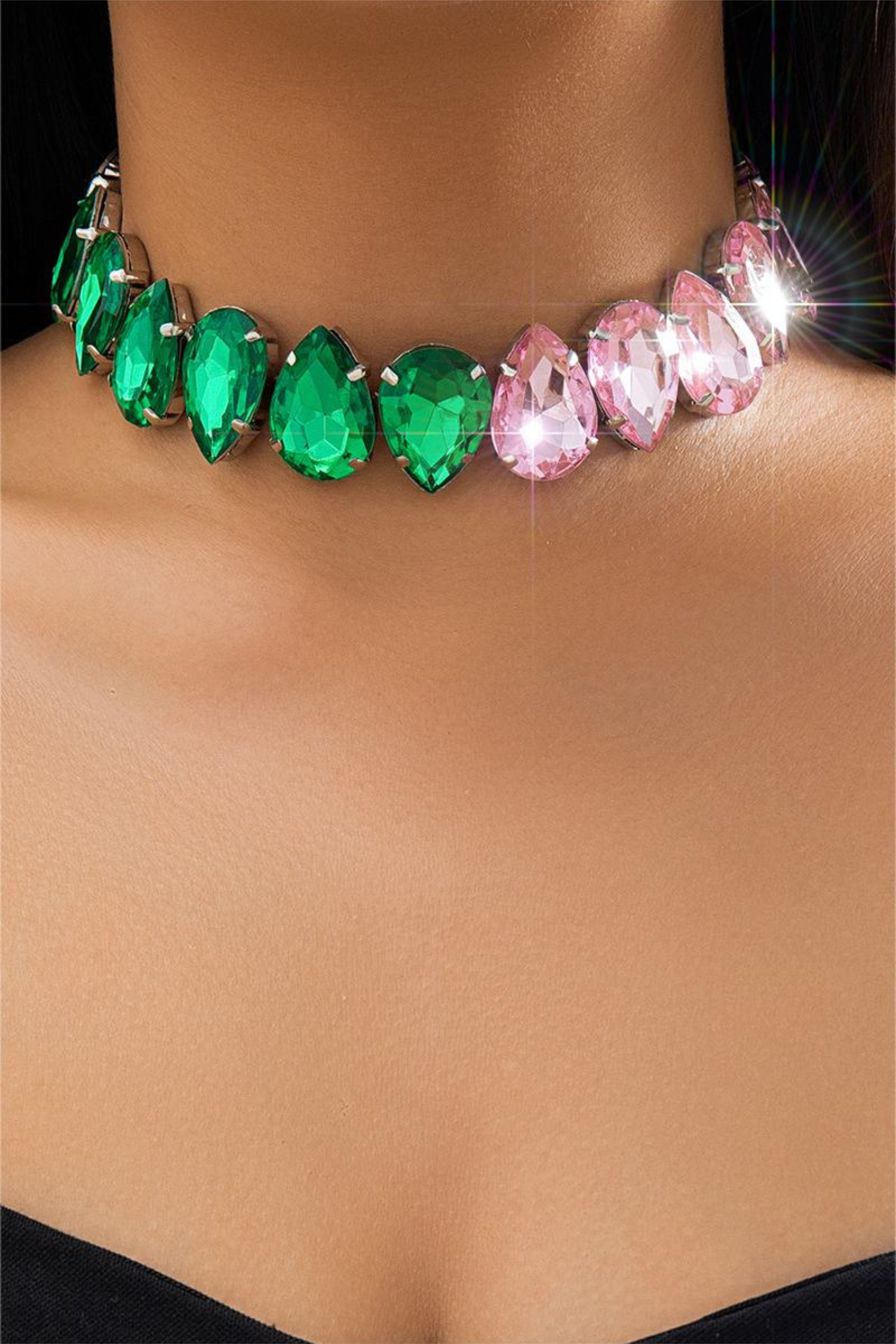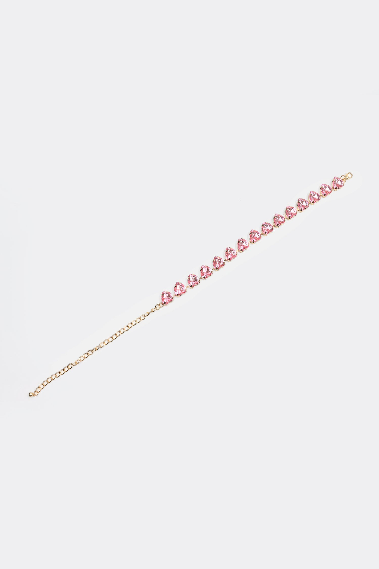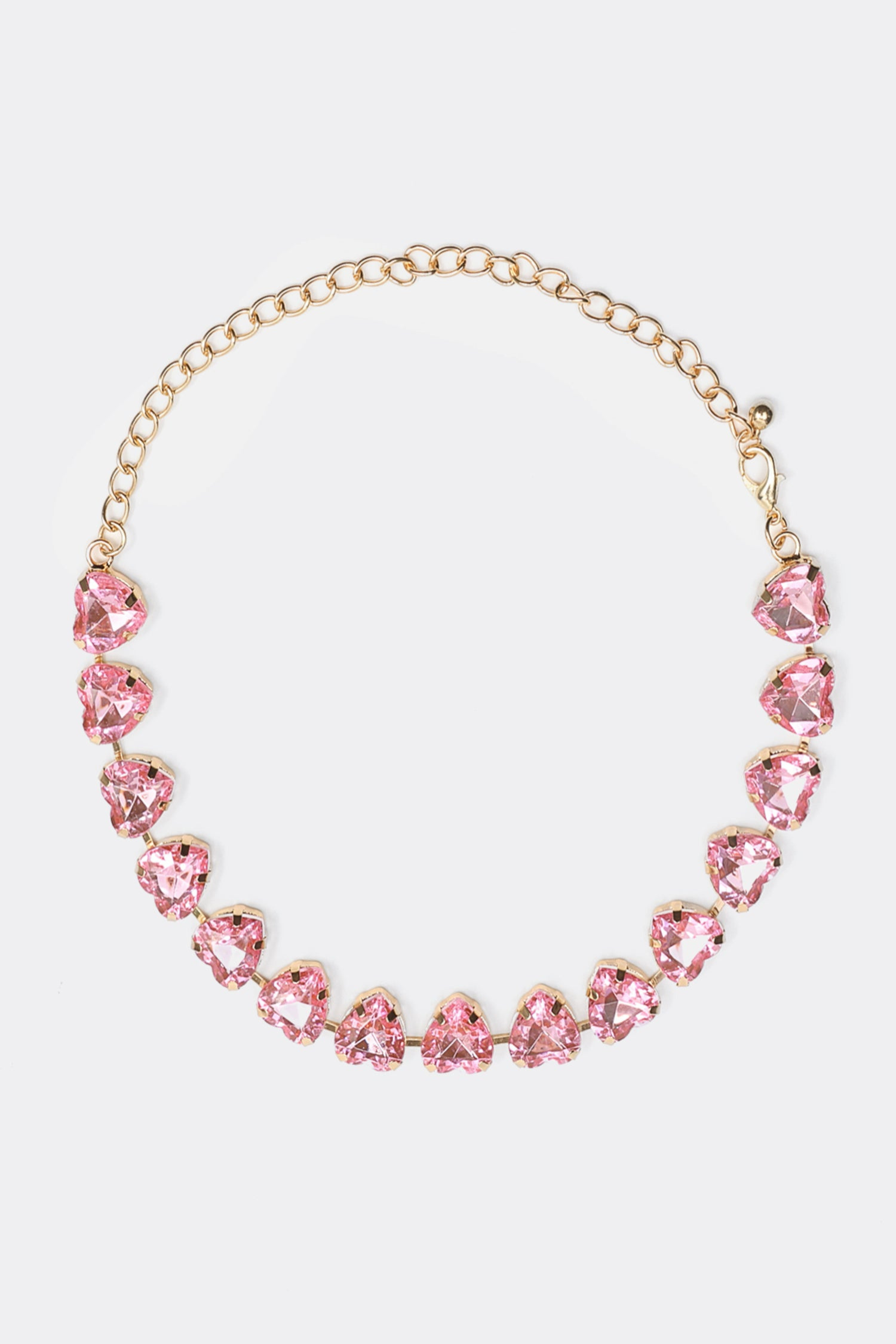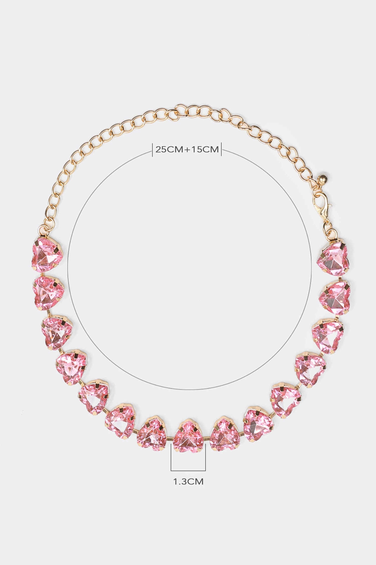 A delicate heart-shaped necklace adorned with a faux pink crystal that catches the light with a soft, elegant shimmer. The polished stud design adds a refined, feminine touch, while the lightweight construction makes it comfortable enough for everyday wear or special moments.